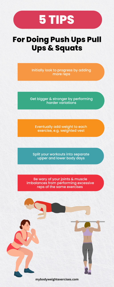 So, in summary, you can definitely get fitter, stronger, and more muscular by just performing push ups, pull ups, and squats.